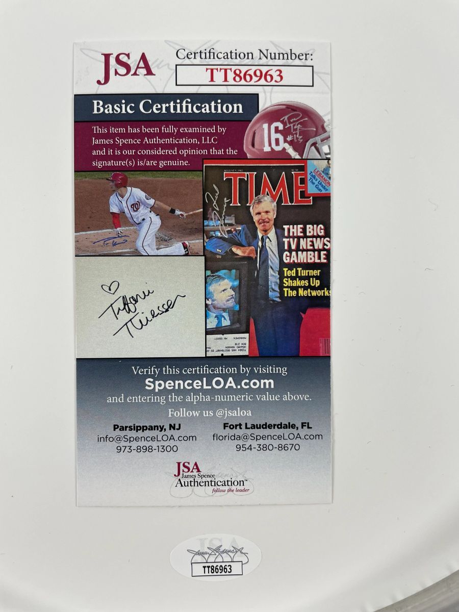 12″ Predator Host Artwork Evans Drumhead, hand signed by Slipknot Drummer Jay Weinberg. This is a clean, well placed signature, signed in a flowing silver marker that really pops off this 12″ Evans Drumhead. Item has been authenticated by James Spence Authentications, and includes the JSA Certificate of Authenticity card.