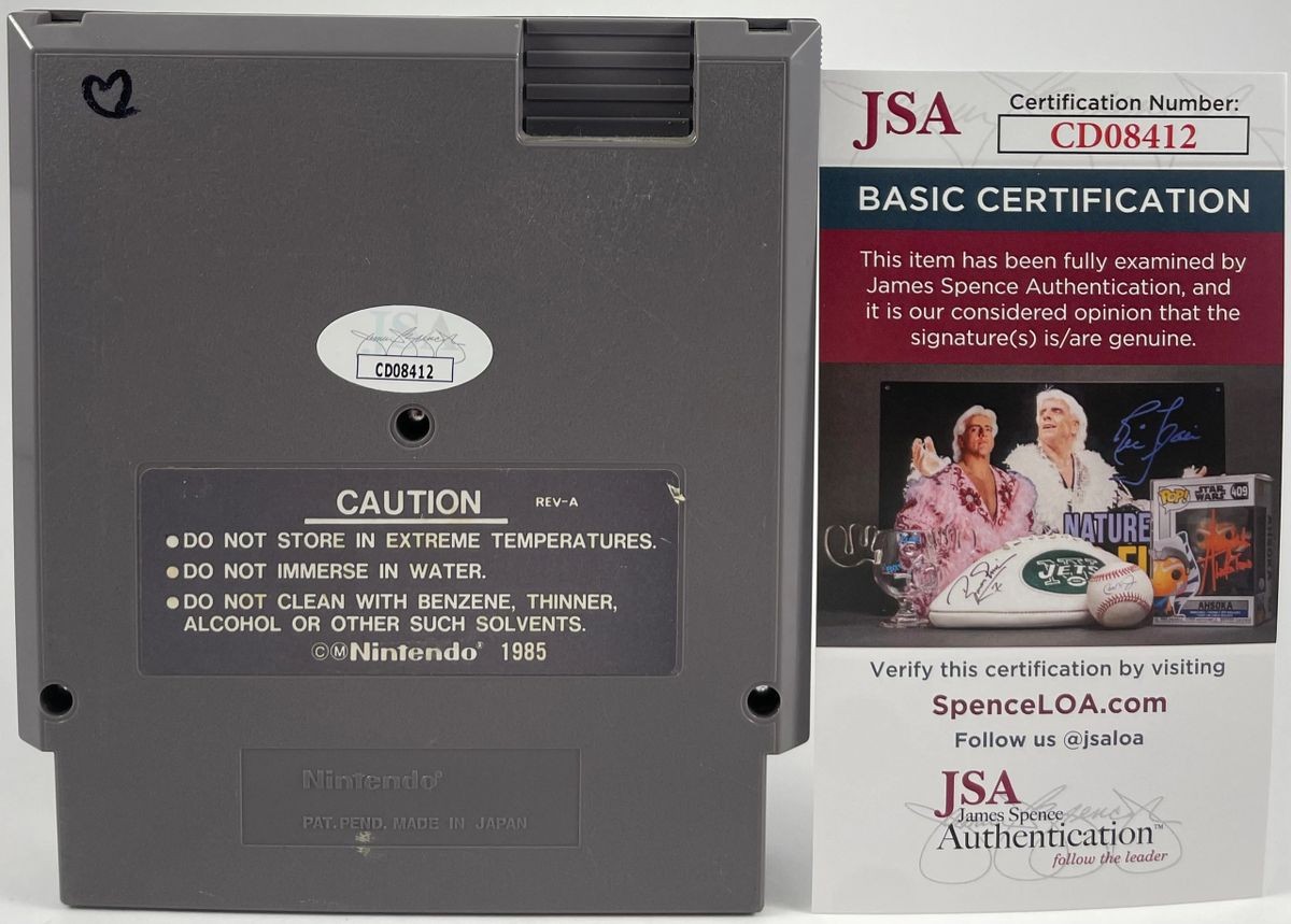 Sesame Street Big Bird’s Hide & Speak Original Nintendo (NES) Video Game Cartridge, hand signed in person by actress Sonia Manzano who played the role of Maria on the popular children’s Television Series Sesame Street. This is a clean, well placed signature, signed in a flowing Black Sharpie that really pops off of the cover of this Sesame Street Big Bird’s Hide & Speak NES Cartridge. Item has been authenticated by James Spence Authentications, one of the most reputable third-party authentication companies in the world and includes the JSA Certificate of Authenticity card.