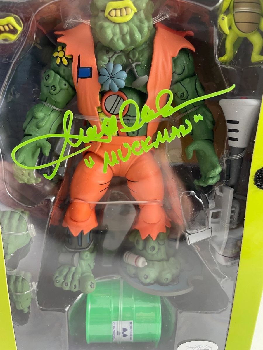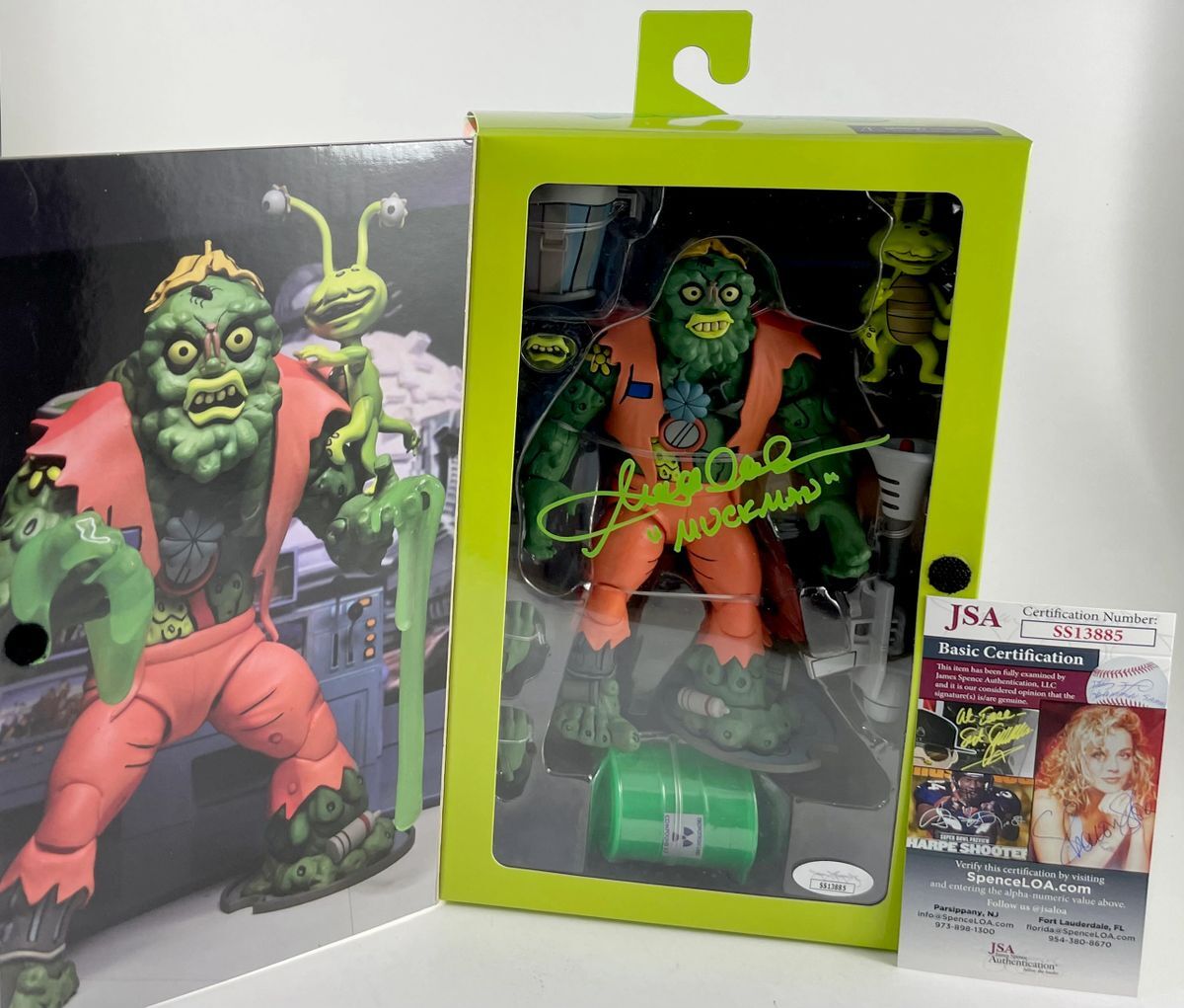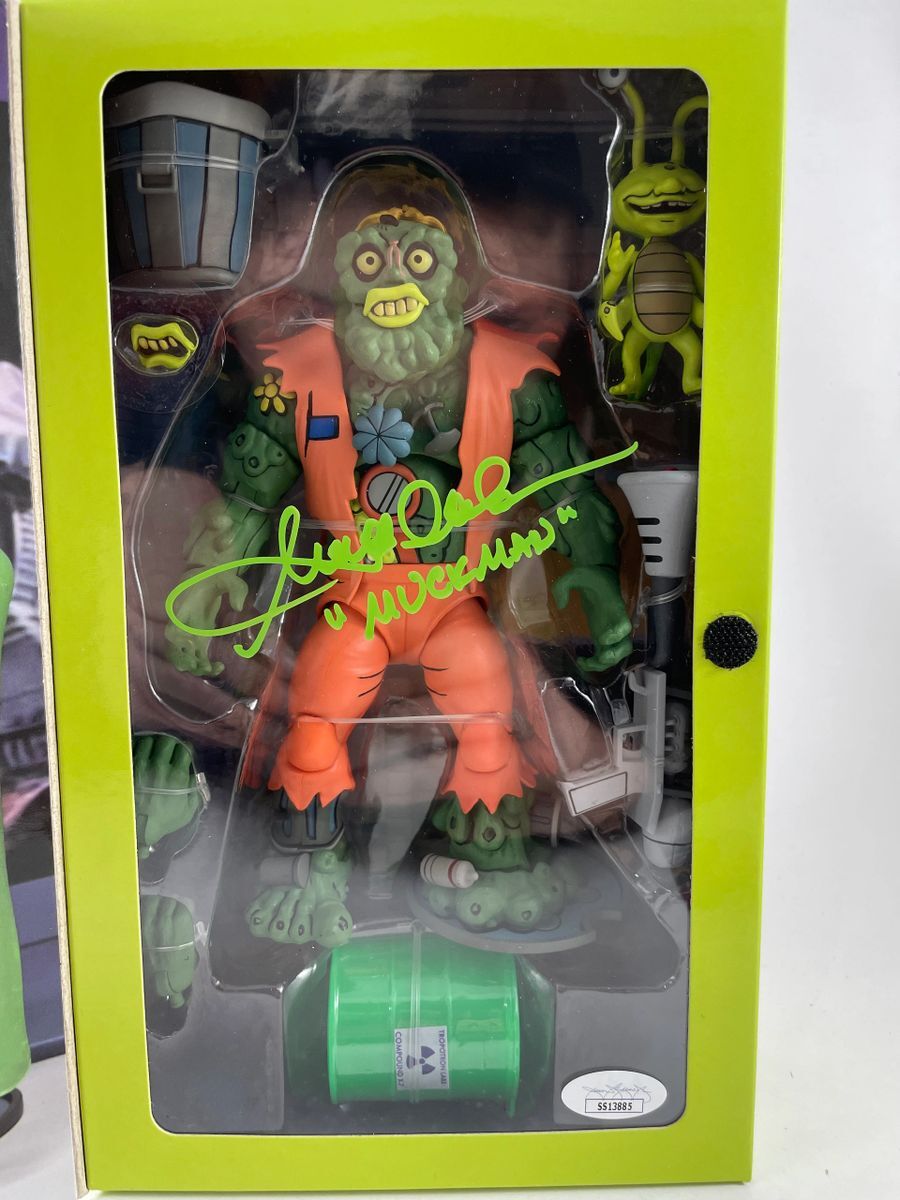 Teenage Mutant Ninja Turtles (TMNT) Muck Everlasting NECA Figure, hand signed in person by actor Townsend Coleman who is credited as the voice of Muckman as well as the voice of Teenage Mutant Ninja Turtle, Michelangelo on the original Teenage Mutant Ninja Turtle animated Television Series. This is a clean, well placed signature, with character name “Muckman” inscription, signed in a flowing Green 2MM Molotow paint pen that really pops off of the plastic. Item has been authenticated by James Spence Authentications, one of the most reputable third party authentication companies in the world, and include the JSA Certificate of Authenticity card.