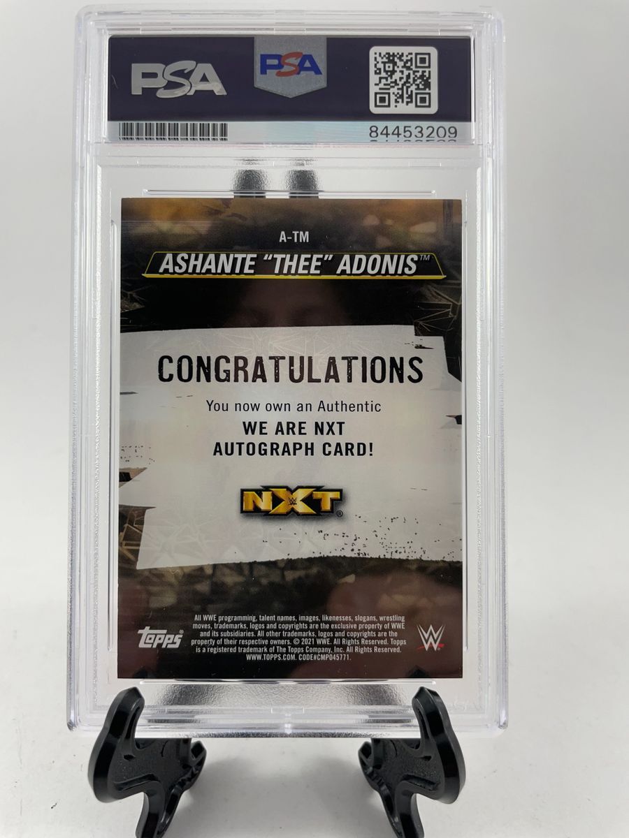 WWE 2021 Topps We Are NXT Ashante “Thee” Adonis on card autographed Rookie card number 19 of 75 made. This is a clean, perfectly placed signature that really pops off of this WWE 2021 Topps We Are NXT trading card. Stand is for display purposes only and is not included. Item has been authenticated and slabbed by PSA/DNA.