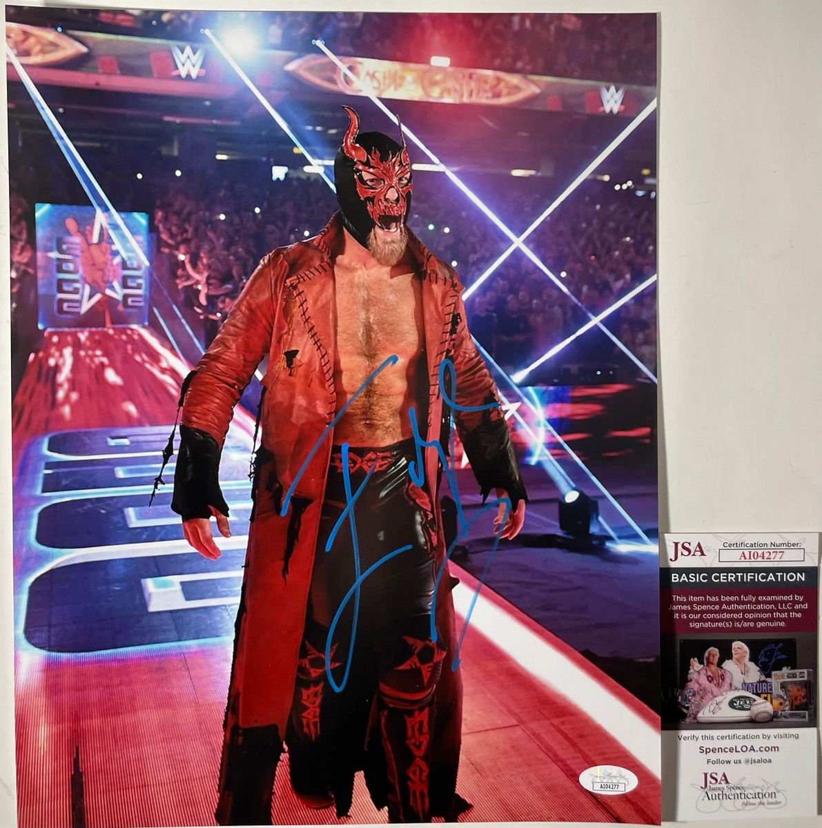 Professionally printed 11×14 photo, hand signed by WWE Hall Of Fame inductee “The Rated R Superstar” Edge. This is a clean, well placed signature that really pops off of this crisp, professionally printed 11×14 photo. Item has been authenticated by James Spence Authentications, and includes the JSA Certificate Of Authenticity card.