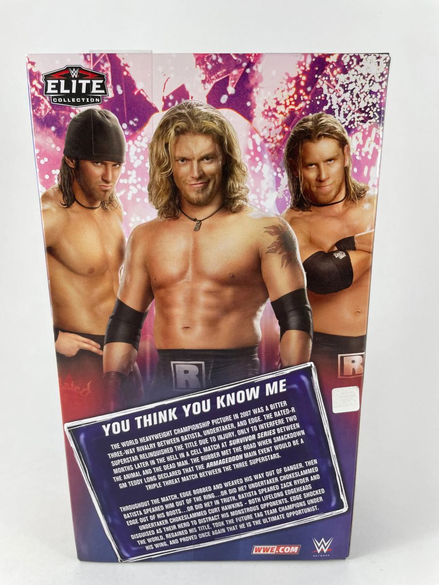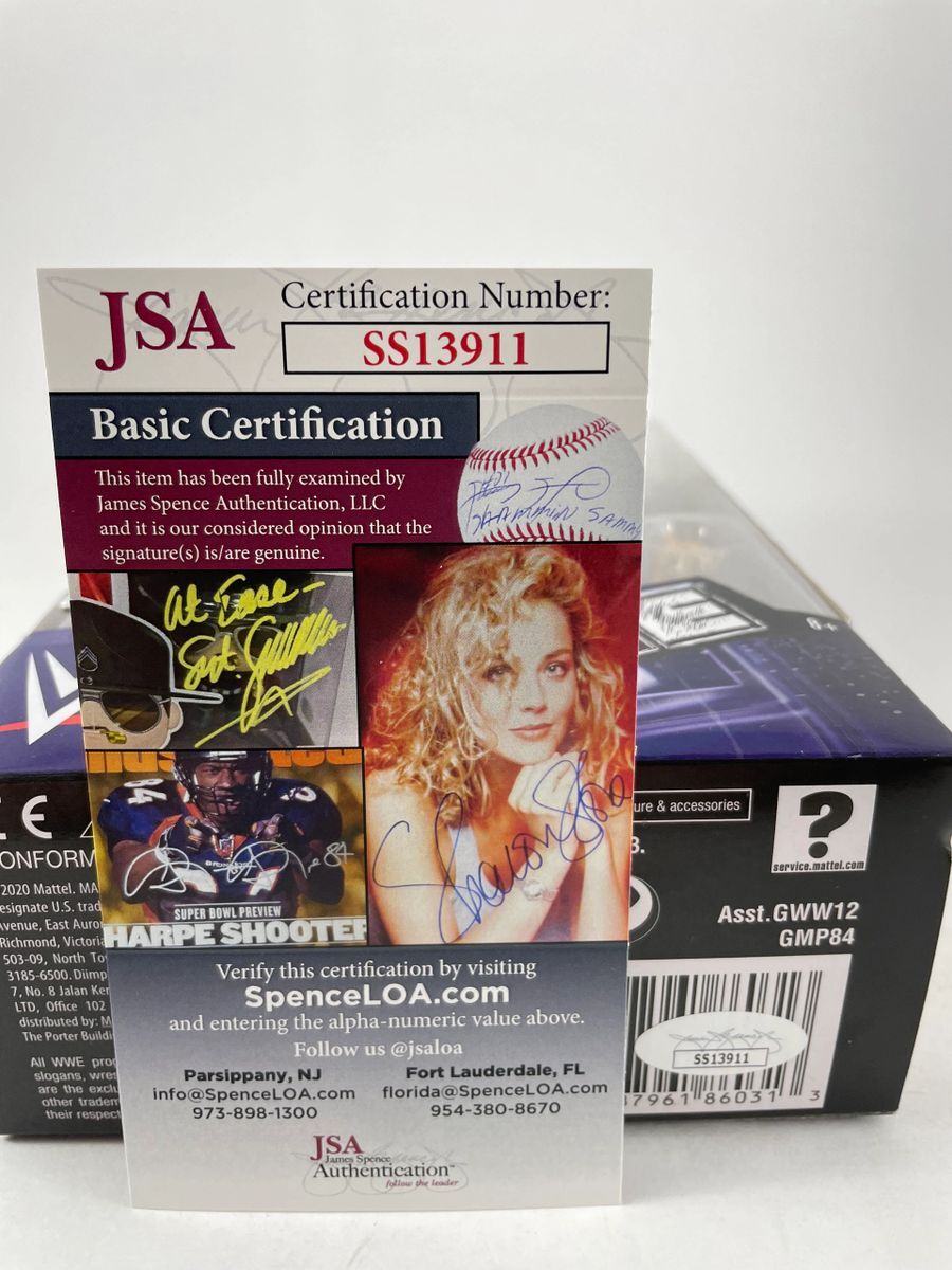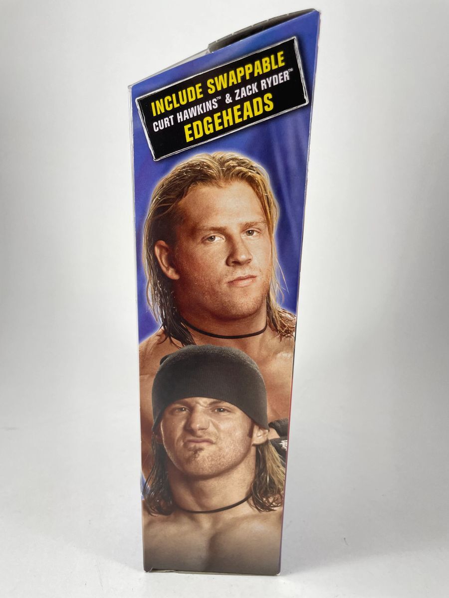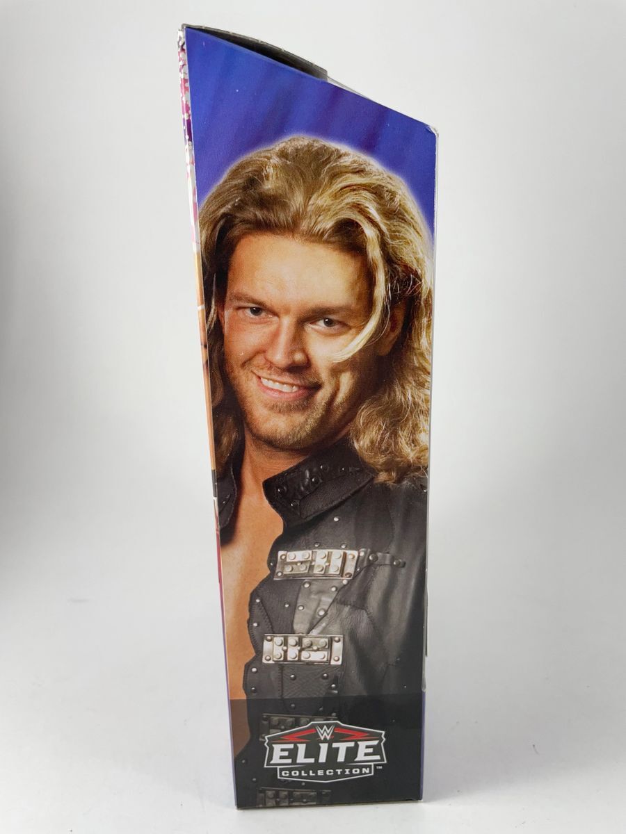 Edge WWE Mattel Elite Ringside Collectibles Exclusive Edgeheads Wrestling Figure, hand signed by WWE Hall Of Famer, The Rated R Superstar… Edge. This is a clean, well placed signature, signed in a flowing Red 2 MM Molotow paint pen that really pops off of the plastic. Item has been authenticated by James Spence Authentications, and includes the JSA Certificate of Authenticity card.