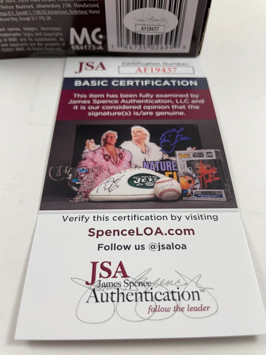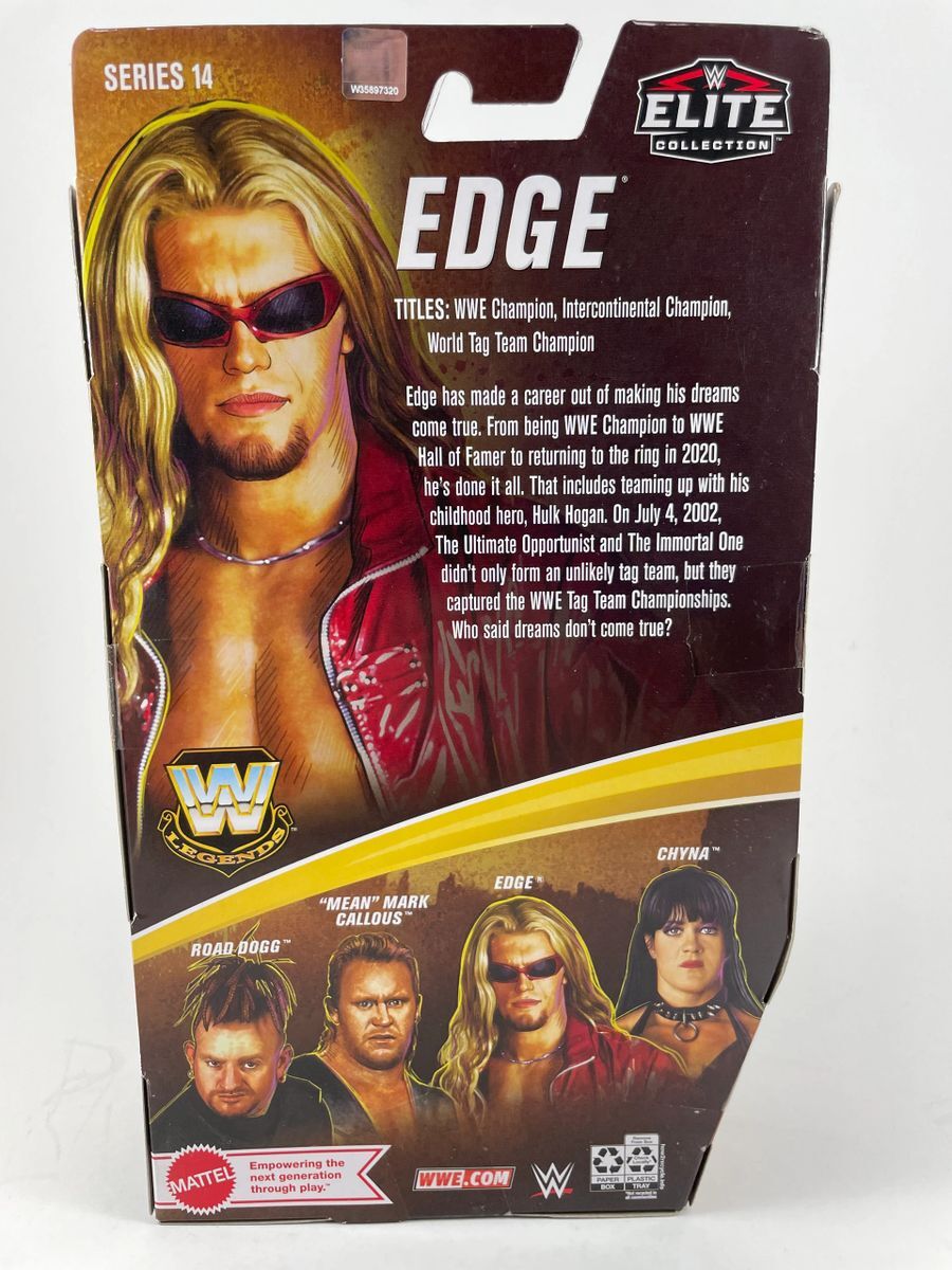 Edge WWE Mattel Elite Legends Series 14 Target Exclusive Wrestling Figure, hand signed by WWE Hall Of Famer, The Rated R Superstar… Edge. This is a clean, well placed signature, signed in a flowing Red 2 MM Molotow paint pen that really pops off of the plastic. Item has been authenticated by James Spence Authentications, and includes the JSA Certificate of Authenticity card. JSA COA# AF19437
