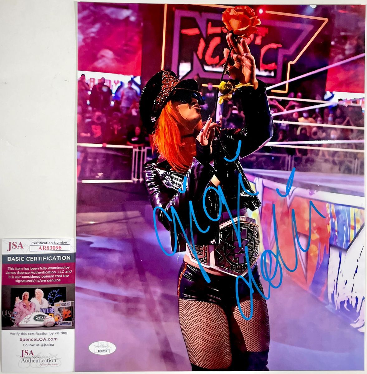 Professionally printed 11×14 photo, hand signed in person by sexy WWE NXT Superstar and an original member of Toxic Attraction, the absolutely stunning Gigi Dolin. This is a clean, well placed signature, signed in a flowing Blue 2MM Decco Paint Pen that really pops off of this crisp, professionally printed 11×14 photo. Item has been authenticated by James Spence Authentications, one of the most reputable third party authentication companies in the world, and includes the JSA Certificate Of Authenticity card. JSA COA# AR83098