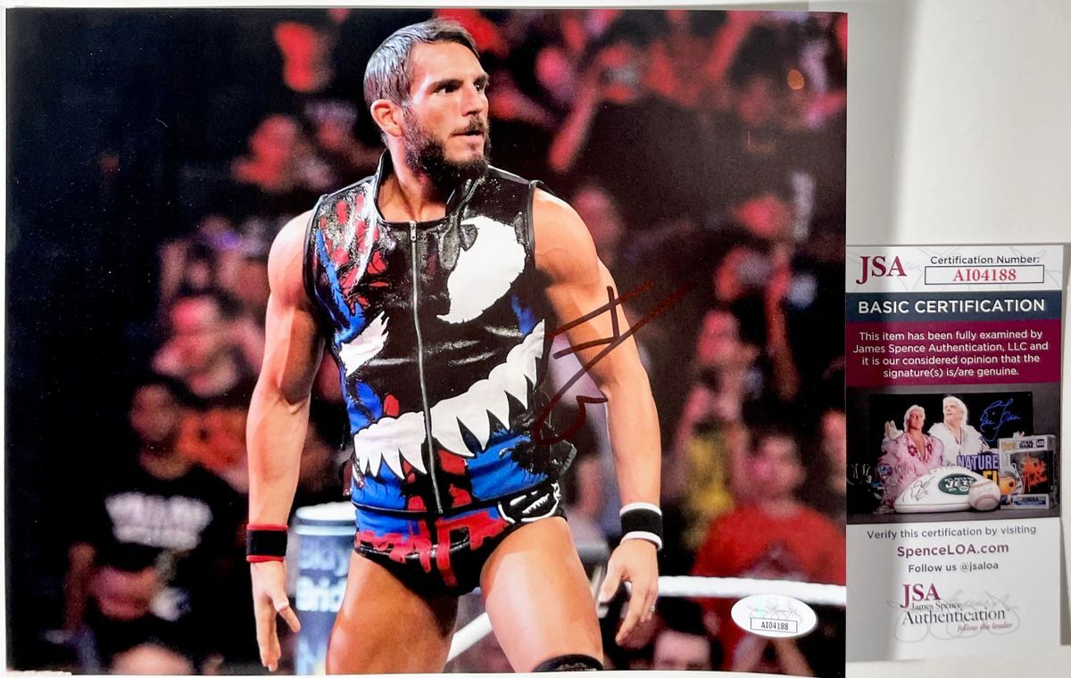 Professionally printed 8×10 photo, hand signed by first time ever WWE Triple Crown Winner Johnny Gargano AKA Johnny Wrestling. This is a clean, well placed signature that really pops off of this crisp, professionally printed 8×10 photo. Item has been authenticated by James Spence Authentications, and includes the JSA Certificate Of Authenticity card.