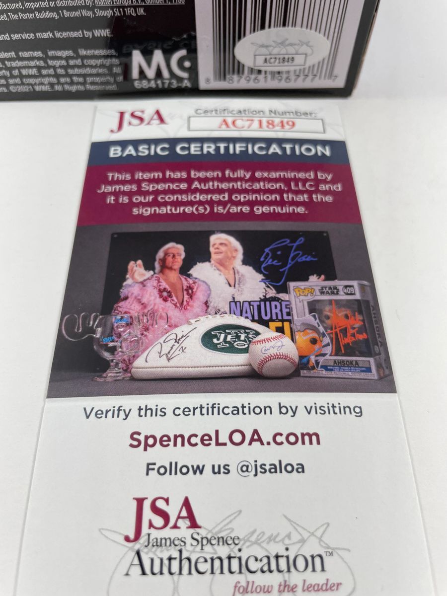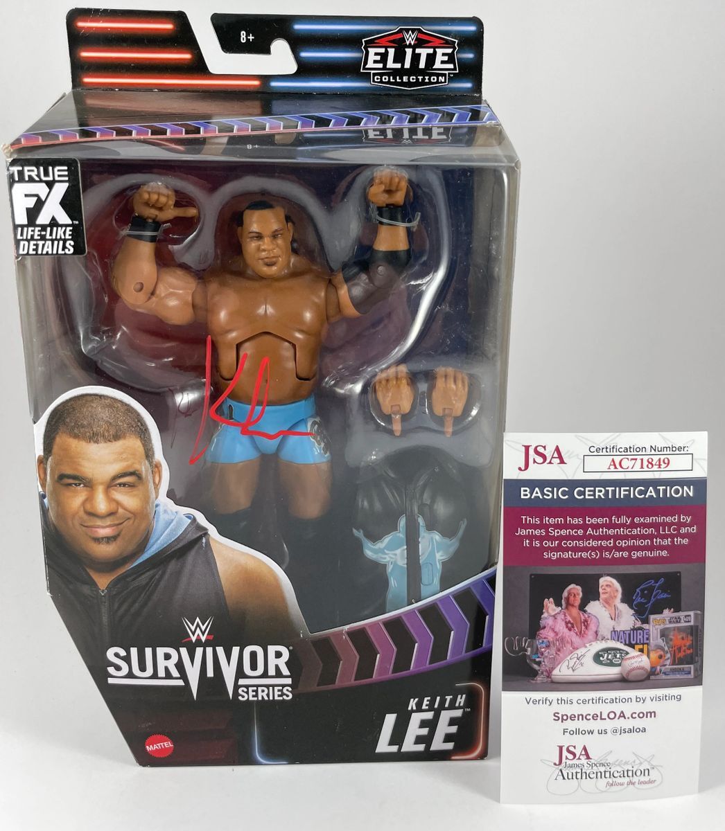 Keith Lee WWE Mattel Elite Survivor Series Wrestling Figure, hand signed by former WWE Superstar, and current member of All Elite Wrestling (AEW), Keith Lee. This is a clean, well placed signature, signed in a flowing Red 2 MM Molotow paint pen that really pops off of the plastic. Item has been authenticated by James Spence Authentications, and includes the JSA Certificate of Authenticity card. JSA COA# AC71849