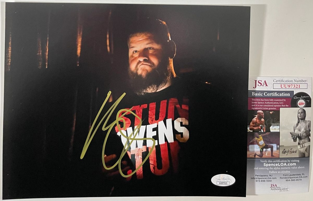 Professionally printed 8×10 photo, hand signed by former WWE Universal Champion Kevin Owens. This is a clean, well placed signature that really pops off of this crisp, professionally printed 8×10 photo. Item has been authenticated by James Spence Authentications, and includes the JSA Certificate Of Authenticity card.