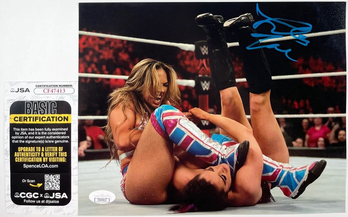 Professionally printed 8×10 photo, hand signed in person by former Bellator MMA Flyweight Fighter, currently competing in WWE’s NXT brand, and about to do a stint with AAA, the absolutely stunning Lola Vice aka Valerie Loureda. This is a clean, well placed signature, signed in a flowing Blue 2MM DECCO Paint Pen that really pops off of this crisp, professionally printed 8×10 photo. A clear plastic 8×10 toploader is included with purchase to safely ship the photo inside of. Item has been authenticated by James Spence Authentications, one of the most reputable third-party authentication companies in the world, and includes the JSA Certificate Of Authenticity card. JSA COA# CF47413