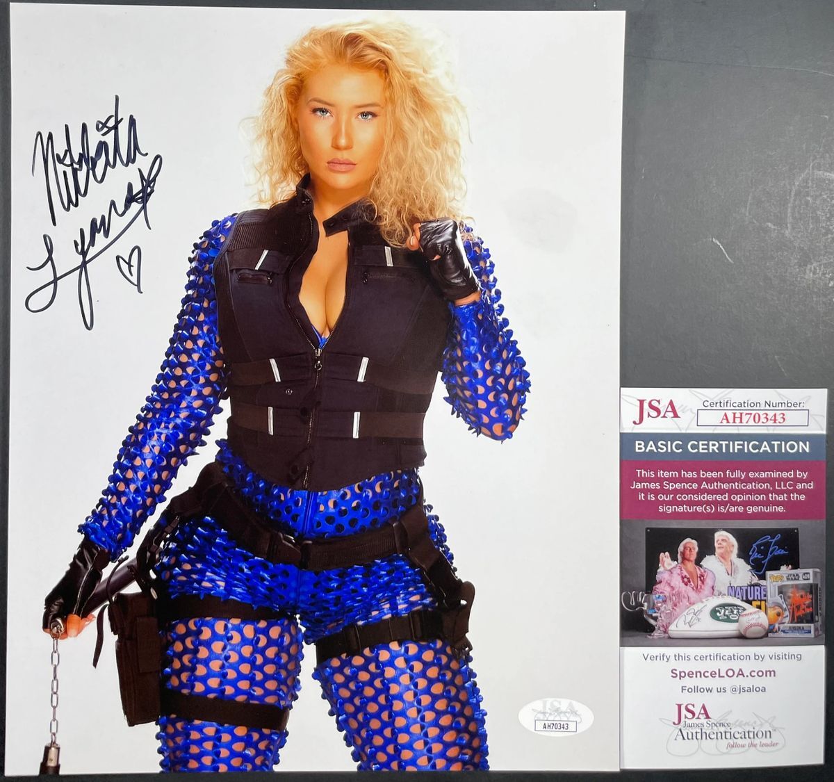 Professionally printed 8×10 photo, hand signed by WWE NXT Superstar, Nikkita Lyons. This is a clean, well placed signature that really pops off of this crisp, professionally printed 8×10 photo. Item has been authenticated by James Spence Authentications, and includes the JSA Certificate Of Authenticity card.