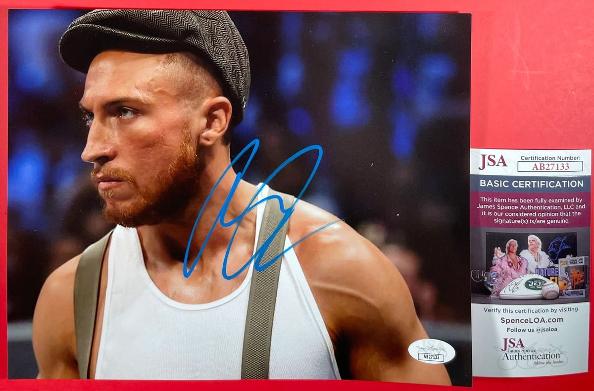 Professionally printed 8×10 photo, hand signed by WWE Superstar and member of The Brawling Brutes Trio, Butch, who previously competed in NXT as Pete Dunne. This is a clean, well placed signature that really pops off of this crisp, professionally printed 8×10 photo. Item has been authenticated by James Spence Authentications, and includes the JSA Certificate Of Authenticity card. JSA COA# AB27133