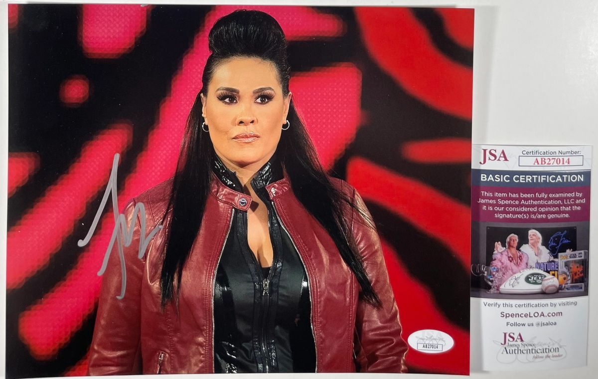 Professionally printed 8×10 photo, hand signed by WWE Superstar, Tamina Snuka. This is a clean, well placed signature that really pops off of this crisp, professionally printed 8×10 photo. Item has been authenticated by James Spence Authentications, and includes the JSA Certificate Of Authenticity card.