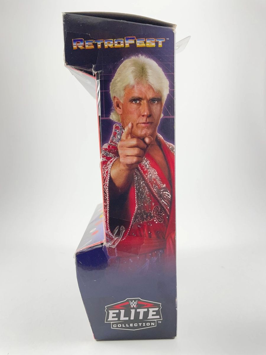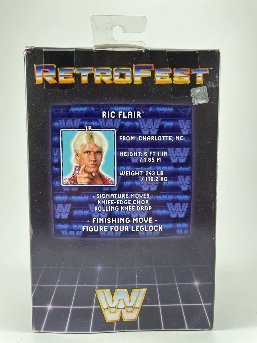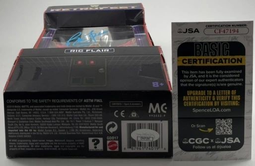 Ric Flair WWE Mattel Retrofest GameStop Exclusive Wrestling Figure, hand signed in person by wrestling icon the sixteen-time World Heavyweight Champion, “The Nature Boy” Ric Flair. This is a clean, well placed signature, signed in a flowing Carolina Blue 2MM Molotow Paint Pen that really pops off of the plastic. Please make note the box is not being sold as mint as there are some little flaws to the packagaing as you can see in the photos. Figure still displays great, Item has been authenticated by James Spence Authentications, one of the most reputable third-party authentication companies in the world, and includes the JSA Certificate of Authenticity card.