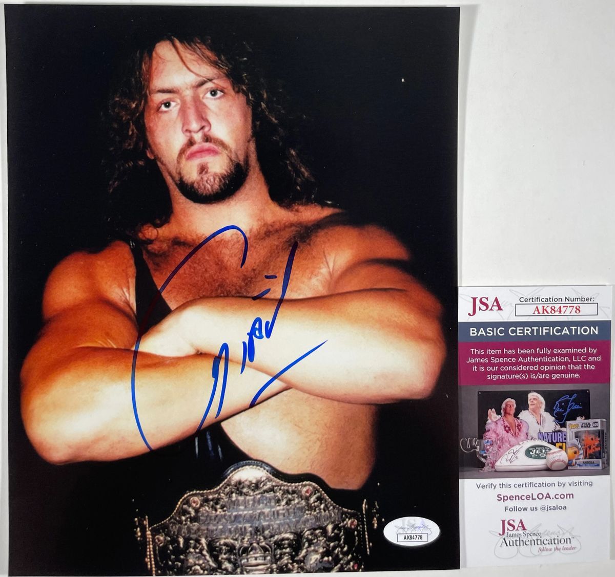 Professionally printed 8×10 photo, hand signed by former World Championship Wrestling (WCW) World Heavyweight Champion, The Giant. After leaving WCW, The Giant went on to win the WWE World Championship as The Big Show, and is currently a member of All Elite Wrestling (AEW) under the ring name Paul Wight. This is a clean, well placed signature that really pops off of this crisp, professionally printed 8×10 photo. Item has been authenticated by James Spence Authentications, and includes the JSA Certificate Of Authenticity card. JSA COA# AK84778
