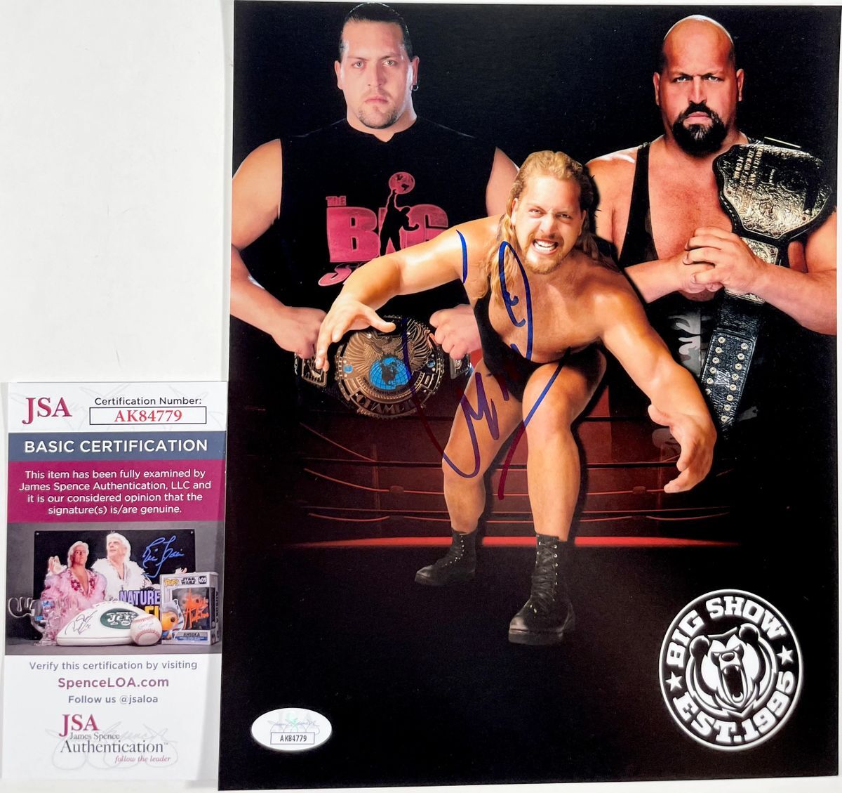 Professionally printed 8×10 photo, hand signed by former World Championship Wrestling (WCW) World Heavyweight Champion, The Giant. After leaving WCW, The Giant went on to win the WWE World Championship as The Big Show, and is currently a member of All Elite Wrestling (AEW) under the ring name Paul Wight. This is a clean, well placed signature that really pops off of this crisp, professionally printed 8×10 photo. Item has been authenticated by James Spence Authentications, and includes the JSA Certificate Of Authenticity card. JSA COA# AK84779