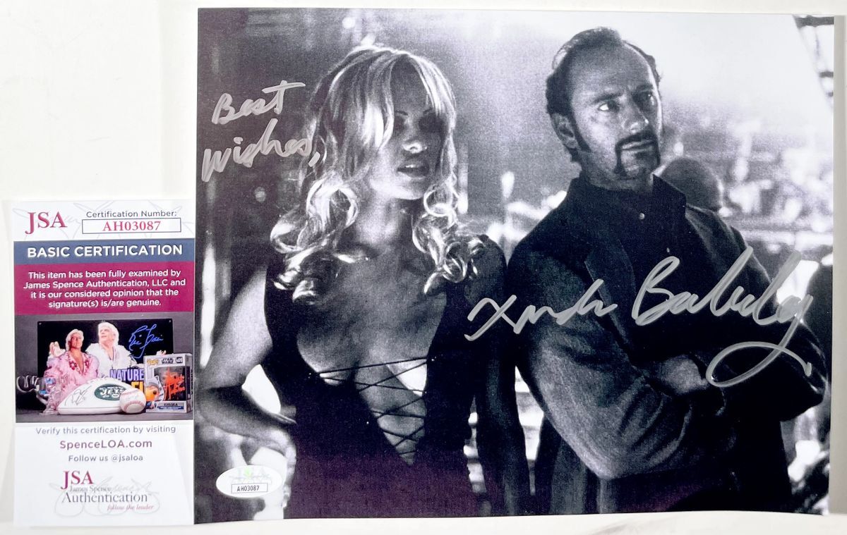 Professionally printed black and white 8×10 photo, hand signed by actor Xander Berkeley who starred alongside Pamela Anderson in the film Barb Wire. This is a clean, well placed signature that really pops off of this crisp, professionally printed black and white 8×10 photo. Item has been authenticated by James Spence Authentications , and includes the JSA Certificate of Authenticity card.