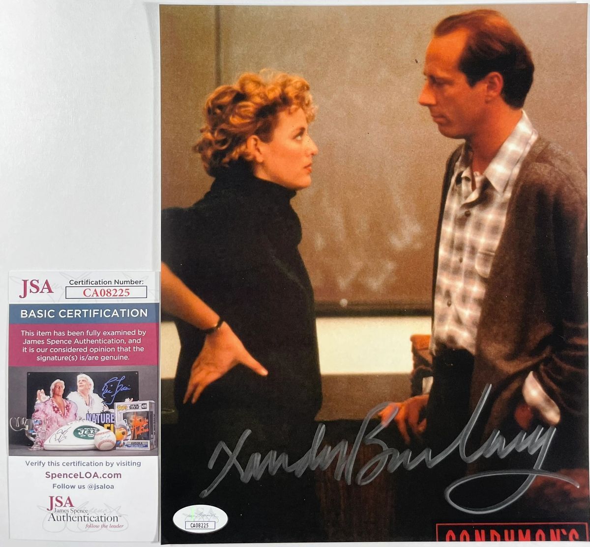 Professionally printed 8×10 photo, hand signed in person by actor Xander Berkeley who played the role of Trevor Lyle in the original 1992 Candyman Horror film. This is a clean, well placed signature, signed in a flowing Silver that really pops off of this crisp, professionally printed 8×10 photo. Item has been authenticated by James Spence Authentications, one of the most reputable third-party authentication companies in the world and includes the JSA Certificate of Authenticity card.