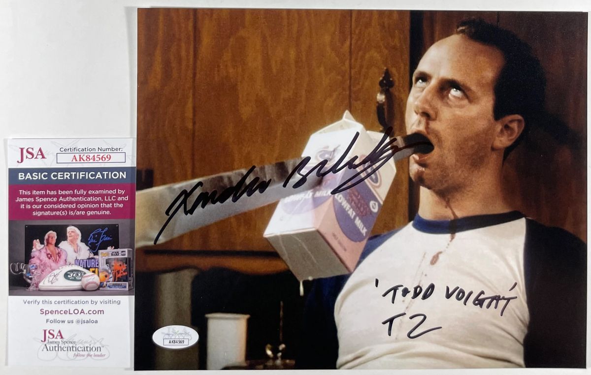 Professionally printed 8×10 photo, hand signed in person by actor Xander Berkeley who played the role of Todd Voight in the Terminator 2 film, This is a clean, well placed signature, with character name “Todd Voight” and “T2” inscription, signed in a flowing Black Sharpie that really pops off of this crisp, professionally printed 8×10 photo. Item has been authenticated by James Spence Authentications, one of the most reputable third party authentication companies in the world, and includes the JSA Certificate of Authenticity card.